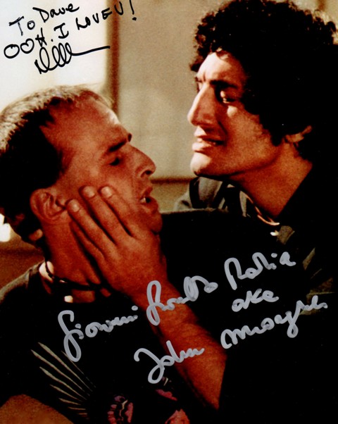 Hess’ co-star in THE HOUSE ON THE EDGE OF THE PARK was Italian actor, Giovanni Lombardo Radice. Despite not being a fan of horror (particularly gore) movies, Radice has the distinction of starring in some of the gruesomest films ever made. These include Lucio Fulci’s CITY OF THE LIVING DEAD as well as Umberto Lenzi’s highly controversial, CANNIBAL FEROX. Hess was selling numerous photos at his table but the one that quickly caught my eye featured Radice and Hess together. It was more expensive than the other photos but was pre-signed by Radice himself. I was happy to add both autographs to my collection.