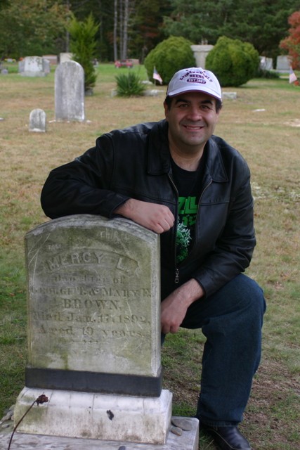 While on the way, David stopped at the Chestnut Hill Cemetery in Exeter to show me the resting place of Mercy Brown. Mercy Brown was believed to be a vampire and represents the first time an undead ritual was performed on American soil. While this was more likely a case of Tuberculosis, coupled with local hysteria, it has inspired many ghoulish tales and remains one of the most prominent urban mythologies from David’s home state of Rhode Island.