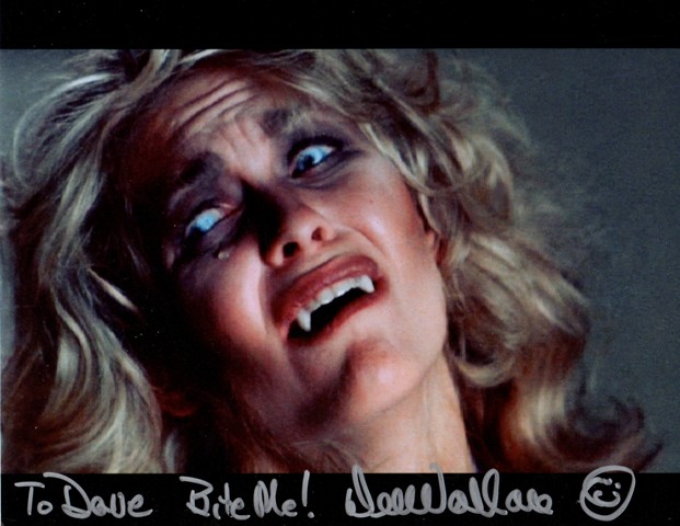 When it was finally our turn to meet Wallace, she was very gracious and enjoyed talking about her films. I told her that it was amazing to me how AN AMERICAN WEREWOLF IN LONDON and THE HOWLING both came out the same year (1981) and neither has been matched in regards to showing a full werewolf metamorphosis, even in today’s CGI world. She completely agreed and showed a genuine pride for the iconic film she was a part of – something that makes genre fans like me very happy. This is one area where the Daves are in complete agreement; We’re fans of both werewolf movies but prefer THE HOWLING – mostly because we believe that werewolves should stand vertically!
