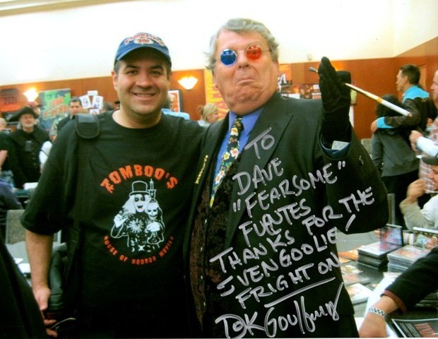 Svengoolie (Rich Koz) – When I sit down and honestly think of the impact Chicago horror host, Svengoolie, has had on my life it is hard not to get downright va-klempt! If it weren’t for his YAHOO group the Daves would never have met, thus there’d be no “Terror from Beyond the Daves” and I’d be deprived of my best buddy! Early on I had written a piece on Sven (which you can read here) and was shocked that he not only read it, but mentioned it in his own blog later that week, He wrote: I was alerted to a very touching and flattering blog written about me by longtime fan Dave Fuentes- you can see it at https://terrordaves.wordpress.com … a nice personal recollection of how he’s watched me most of his life! I’ve met Dave and his family at several of my appearances, and we’ve shown some pictures of them during our mail segments- but this blog was a big surprise to me, and I appreciate all his kind words.. I was so happy that he was able to see how much of an impact he had on my childhood and how his legacy continues on through my own children. My six year old accompanied me to a Svengoolie event last year and still walks around the house with his signed rubber chicken. It’s not many horror hosts that can boast this type of multi-generational impact and I am grateful that ours is one of those rare examples. Dave F.