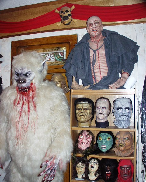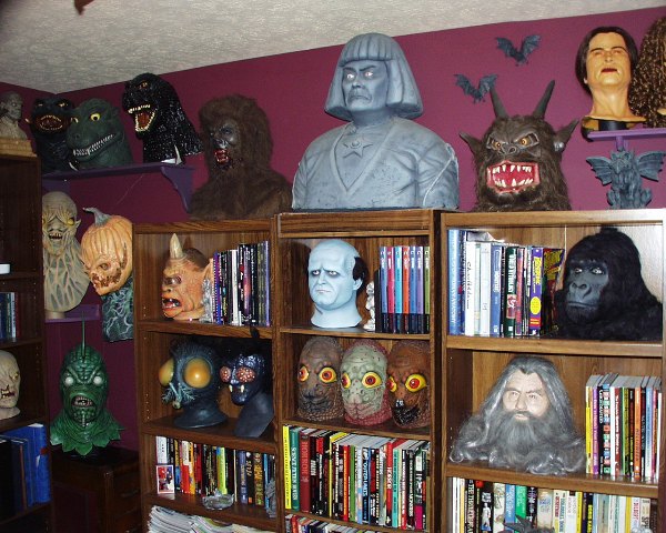 One of the reasons I was drawn to David was because he was so prominently featured in “The Halloween Gazette”. Not only did he write articles and provide photographs from his impressive collection, but he also did a lot of the original artwork and always had ads of masks he was selling. Being a zombie fan, and seeing that his Deadalus and Bonaparte masks were only $30, I immediately ordered them and that started a friendship that has lasted to this day. It was obvious from the start that David was the go to guy in the mask collecting world. Not only does he have one of the most impressive mask collections around, he is also the most knowledgeable person on the subject of Halloween masks and busts that I know of.