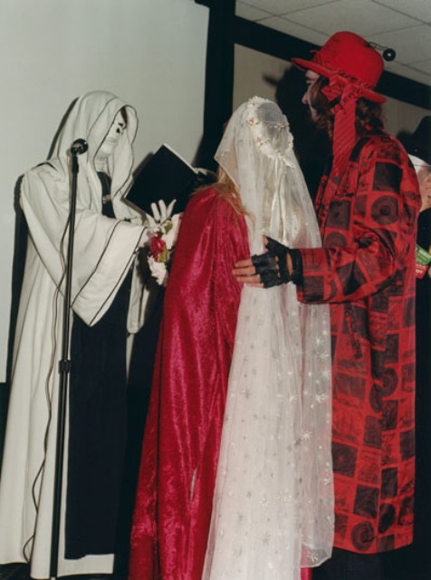 Over the next nearly twenty years he appeared on my show many times, and I popped in on the New Shock Theatre revival that Andy Copp produced on public access. I called him my “Illegitimate Stepdaddy”. Barry took that a step further toward the heart and called me his son, which, in the horror host family sense, I suppose is true. What an honor and privilege! In 2002 he came on my show, bringing an attractive lady vampire named Suspira with him. He came in saying “Ho, ho, ho! I brought you something!” Little did anyone know at that time that the joke would carry over to real life. In 2003 Dr. Creep was my best man at our horror host wedding at Cleveland’s Cinema Wasteland convention, perhaps the greatest night of my life. Just one more way Barry changed the course of my life, as he did the lives of so many others.