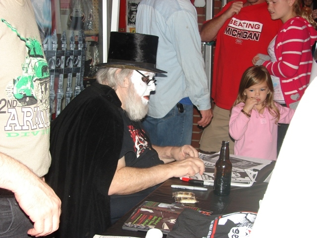 As with many of the horror host icons I’ve had the pleasure to meet, I knew of Dr. Creep’s work through trading tapes with various friends over the years. When I heard he was arriving, I was excited, but nervous. I even found that I was trembling ever so slightly. After all, he was as much a legend to me as Zacherley or Vampira. In through the doors walked this larger than life presence, smiling, shaking hands, signing autographs. Everything a horror host should be. After introductions were made, he treated us to stories of his time on the air. He had this wonderful quality about him. He made you feel comfortable, as if you were old friends. And he was a master story teller.