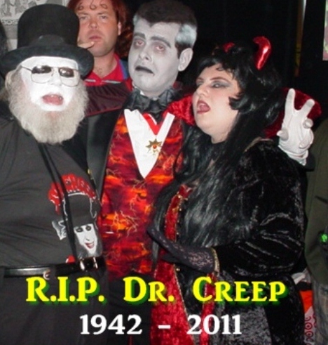 SINISTER MINISTER: I had never met the good Dr., but have heard so many good things about him, I feel that I did…So, we at the Chap-Hell of Horror send our most sincere condolences to all family & friends of Dr. Creep…