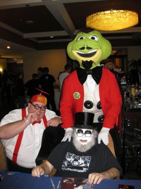 MIKE MURPHY (SON OF FROGGY):  I wish to thank A. Ghastlee Ghoul, Suspira, and Sue Cantrell for giving me the opportunity to learn who Dr. Creep really was. I didn’t grow up with him (he wasn’t on here in Michigan). I had never seen his show. At first he was just one of many new people I had met that worked in the genre. In October of 2005 I was invited to Troy Ohio to see him appear first at Around About Books (with A. Ghastlee Ghoul and Suspira), later as the guest of honor at a masquerade ball. Over the course of an afternoon I got to know him through the eyes and hearts of his fans. Each person I watched him interact with greeted him like a favorite uncle, and he responded in kind. The love I experienced there that day was wonderful. I listened to the conversations, and soon found out many of the fans came to see him not only for his work on television, but also for being touched in one way or another by the charity he co-founded (it makes me happy to think of how his face would light up when later we talked about Project Smiles). I feel blessed to have been able to spend that day with him, and for the time I had with him after. To me, Barry lives where all great people always are and always should be…….in the minds and hearts of those they touched, and those that love them.