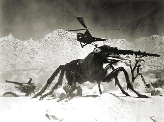 Different types of special effects were used in the making of these fun films. TARANTULA featured footage of an actual tarantula superimposed over scenes to make it look huge. THE DEADLY MANTIS used models and miniatures to pull off their effects. THE BLACK SCORPION utilized stop motion animation by the great Ray Harryhausen. THEM! featured full-scale models that could be operated as giant puppets. The ants in THEM! are very realistic in their design and even their movements are scary. These are definitely not a creature you would ever want to come face to face with in real life. Insects are fascinating and at times, scary creatures in their design as is and to bring them to larger than life proportions just makes them all the more scary.