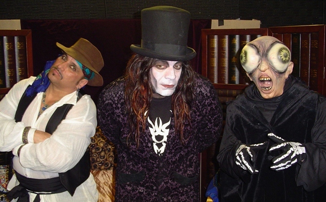 Just before Destruction took to the stage, his current sidekick – Deadgar Winters arrived. I had met Deadgar on the two occasions I had been a guest on The Crimson Theater and, despite his appearance, he is actually one of the nicest people in the horror host world. I remember the last visit o the show (taped on Friday mornings at the Time Warner station in Kenosha) we were all sitting in the control room and Destruction was looking at the newly posted Horror Host Report. As he scrolled down the list of hosts, he suddenly stopped at Reno’s Zomboo. “Hey Deadgar, looks like they got YOU on here!” he joked. There did appear to be a slight resemblance between the two and, as I saw Deadgar enter the lounge, I noticed he was sporting an all-new silver wig as opposed to his customary blond one. “I can’t go to Horrorhound looking like Zomboo,” Deadgar quipped.