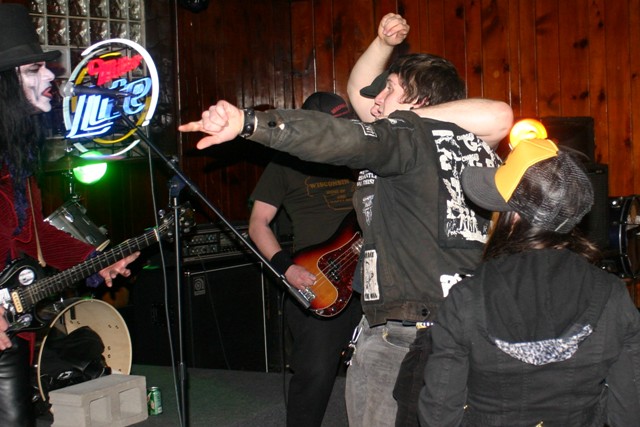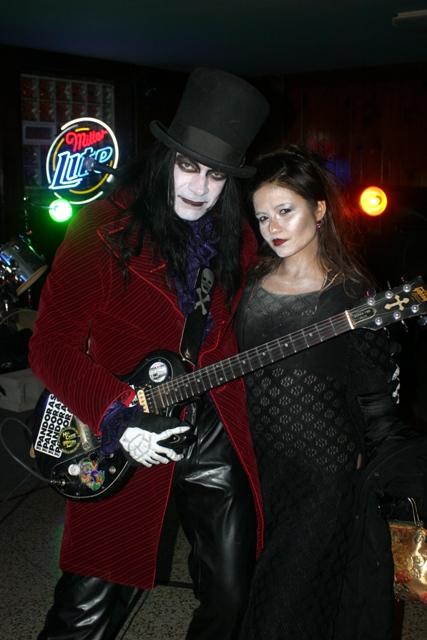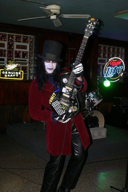 Deadgar’s arrival coincided with that of a missing band mate (whom I mistook as a sidekick due to his own gruesome appearance). After a few moments to finish setting up, the show began. Prior to this night, I had seen photos of Dr Destruction performing and had heard some of his music courtesy of a CD he gave me back in October titled, “My Darkness Grows.” This was my first time seeing him LIVE and hearing him with “The Dead Leathers.” It had been a long time since I had attended a show with as much volume in a confined space. I felt my rib cage vibrate as Destruction let loose. I must say, however, I enjoyed every minute.