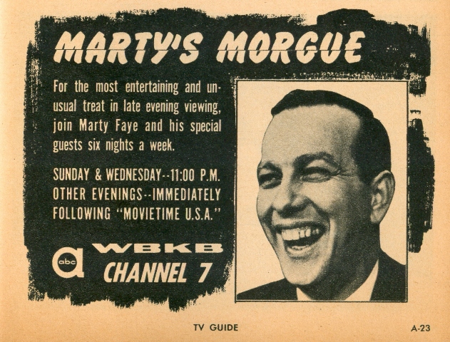 Marvin’s fame and memories of the show seem to have been relatively short-lived. Sadly, few people around my age that I’ve asked, who either watched the show or at least must have been aware of it, seem to remember Shock Theater. Like so many local Chicago TV shows of the 1950s, all with big fan followings at the time, Shock was done live. To date I know of no kinescopes or videotapes preserving the program, although I’m always hoping that one or more might eventually surface. The show really should be seen today by fans of the “horror host” phenomenon. Like Zacherly, Vampira, Count Gore, Sinister Seymour and a minority of other horror hosts, Marvin was one of the best!
