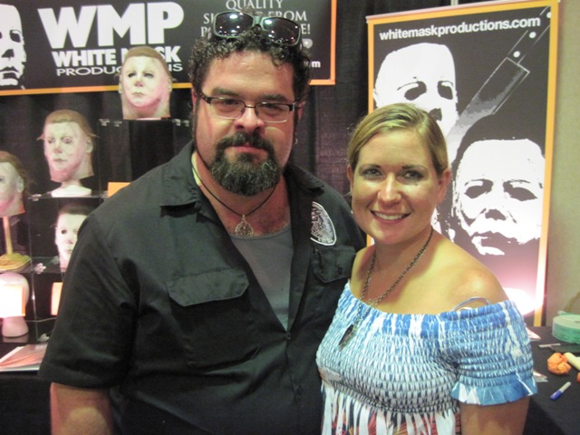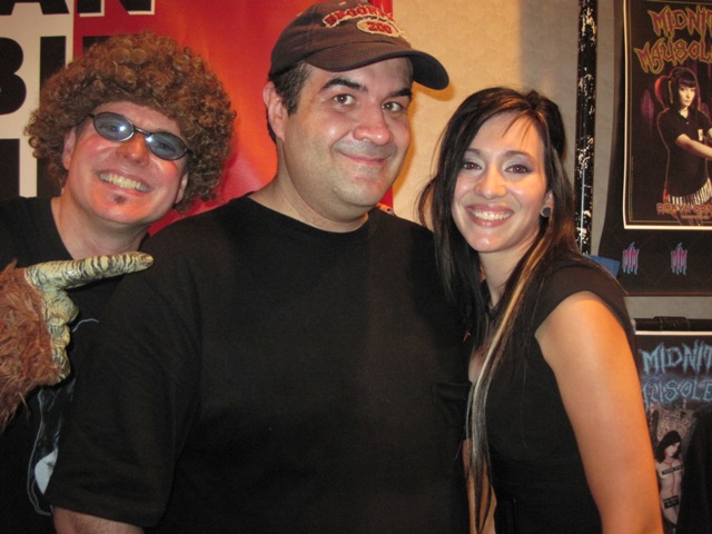 As I looked around for the Gregulas (passing a long line of conventioneers who suddenly had an interest in art) I ran into Jason Hignite. Let me state for the record that, when I die, I am hoping to come back as him. Not only does he get to work with horror hosts and write for Horrorhound Magazine, but he can always be seen at conventions with a cocktail in one arm and an attractive woman (in this case TWO) in the other. I mean no sarcasm when I say this; don’t bother reading a Martha Stewart magazine if you want to know the definition of “Living,” just hang around with Jason!
