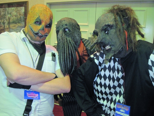 Atomic Age Cinema – featuring Dr Calamari, Basement Boy, Baron Mardi and Woody the Clown are no strangers to working a crowd and have been doing so for over six years. “It began in 2004 as a fundraiser for the Cinephile Film Arts Organization,” says Calamari. “It was dedicated to helping local filmmakers get their films made and shown. Cinephile eventually transformed into the Dark Carnival Film Festival and the profits from AAC!” I’d met them before at Horrorhound Weekend and always enjoyed talking with Doc Calamari who is not only a great guy but has one of the coolest & original looks. His tentacled face is matched only by his lone silvery eyeball that will have you quickly forgetting there’s a man underneath!
