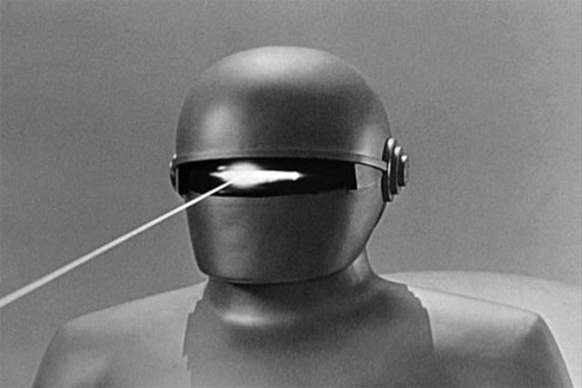 The movie starts with reports of a mysterious object orbiting the Earth. The flying saucer lands in Washington and it’s occupant, Klaatu (played by Michael Rennie), has a message for the world. Though he comes in peace it doesn’t take long for a jumpy military person to shoot him in the arm. Klaatu is not alone though. His companion Gort, a giant robot, immediately shows off the alien’s power by using his eye beams to render the military helpless by melting down all of the weapons. Klaatu is brought to a nearby hospital and taken care of but it is quickly obvious that he is a prisoner.