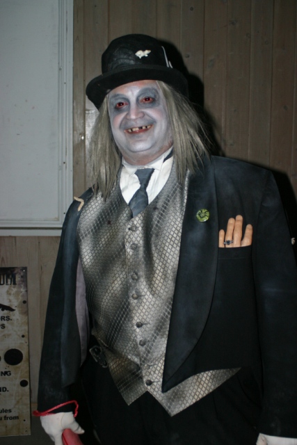While we stood in line, I chatted with a few other fans. In front of me was a middle-aged couple and their teen son. “I knew Svengoolie because I’m originally from Chicago,” the woman told me. “But I don’t know who else in these parts will know who he is and show up for this?” In contrast, the couple standing behind me (the gentleman wearing an “It Came from Berwyn” T-shirt) said they lived around the block and were thrilled Sven was here. While we chatted, scary music played overhead including the eerie carnival sounds of Midnight Syndicate. Adding to the macabre atmosphere, a few of the Asylum’s denizens came up to provide extra scares.
