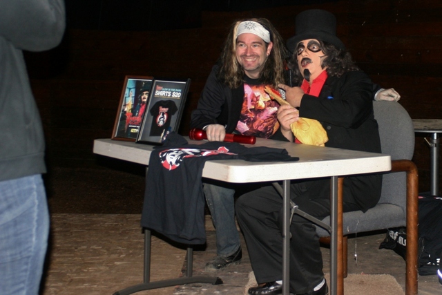 Sven got settled on stage and took a quick picture with one of the Asylum’s workers who was wearing a Kitty Zombie T-Shirt. As he gushed over Sven, the woman assigned to work the line turned to me and said, “I just don’t understand these people that get all worked up over celebrities. It’s crazy!” I thought about mentioning to her that I had been known to stand in line hours to see Svengoolie, had recently written an article in SCARY MONSTERS MAGAZINE about my fandom of him, and had a Svengoolie shrine back home in my curio cabinet but decided to just stand there smiling instead.