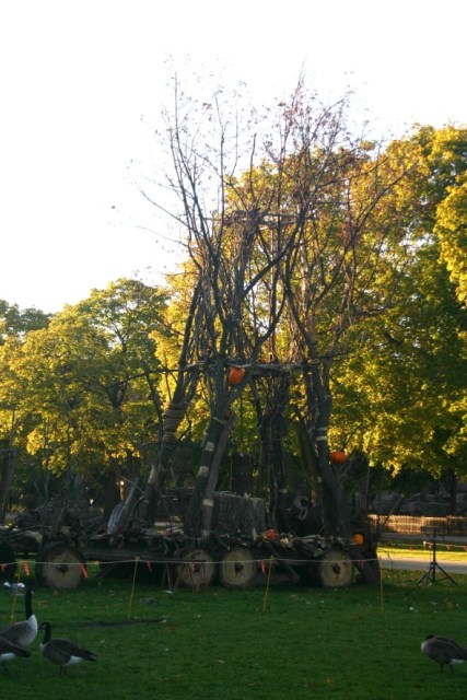 After leaving Sven I encountered a large wooden structure surrounded by a group of enthusiastic onlookers. Little did I realize, I was about to witness a “pumpkin execution” hosted by the executioner himself – an amazing actor that did a tremendous job riling up the crowd. When asked the status of the pumpkin in question, the crowd screamed “Guilty!” as it was promptly placed in position to meet its fate!