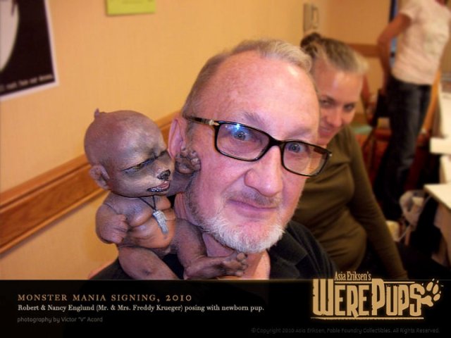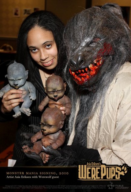 I first became aware of WerePups over a year ago. After a friend took pics of them at the HORRORFIND convention in Gettysburg, PA, I knew it was something that I wanted to find out more about (plus, of course, I wanted one). Thankfully one of the pics my friend took included the URL for the WerePups website and the rest is history so to speak. Over the past year I came into contact with Asia Eriksen (creator of the WerePups), her husband Anders Eriksen (creator of Nightmare Gloves, the BEST Freddy Krueger gloves available) and of course Eriq Chang, mastermind behind Fable Foundry, who brought everything together.
