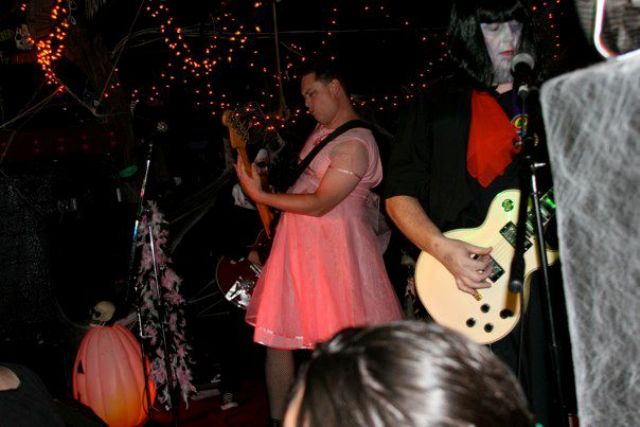 Before the next band we crowned a zombie King and Queen and pulled them onstage to dance to the Prom Night theme. Was pretty silly, fun, and we had a special handmade trophy from Evil Pumpkins for the King and queen.