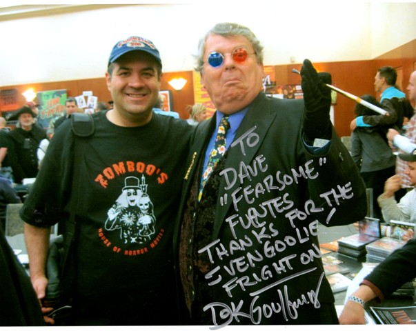 I had the privilege of meeting Monahan at the 2010 Horrorhound Weekend Convention (see details of that meeting HERE). At the time, my friendship with the “other Dave,” David Albaugh, was relatively new. Having grown up fans of Svengoolie, we decided to expand our knowledge of the other hosts who operated around the country – especially back when we were watching Sven. This was before either of us ever considered doing a blog and my job was simply to get more information and, hopefully, acquire some shows for us both to enjoy. I had specifically been interested in meeting Doktor Goulfinger because of his work in the amazing documentary, AMERICAN SCARY (now in book form which we’ll be covering in greater detail soon), which had ignited the interest of both Daves regarding other hosts.