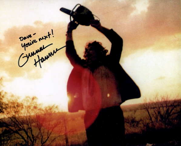 After waiting for Mr. Hansen to talk with a few fans, it was finally our turn. We found him to be extremely personable and it was hard imagining this pleasant and seasoned individual the same one responsible for running actress Marilyn Burns into a screaming frenzy of terror (while us viewers bit our nails to the nub praying for her escape) in the film. Not surprisingly, Hansen said they had NO idea the film would create the impact that it had. Hansen has spent more of his life as a writer as opposed to actor but soon will be merging the two with a new book “Chainsaw Confidential: How We Made America’s Most Notorious Horror Movie.” For film buffs looking for new, inside information on this horror classic, it will no doubt become a must read!