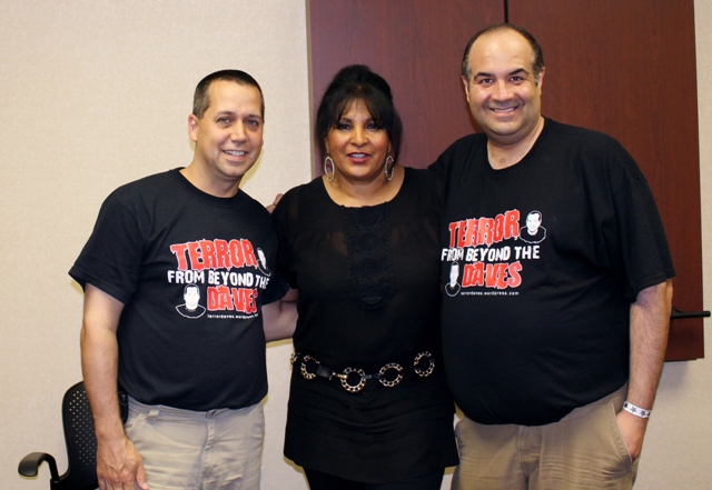 After the Horror Host Hall of Fame Induction Ceremony had ended, my co-blogger David and I had but a few things left on our Horrorhound “to do” list. One of these was to locate Grier and obtain a signature for our friend, Richard Braden. Braden has been indispensable to us “technically challenged” Daves in not only handling the site’s issues (of which there are many) but also creating banners and our site’s main header. We often receive compliments regarding the overall “look” of TERROR FROM BEYOND THE DAVES and this is in no small thanks to Richard! As he is an autograph collector, we always offer to get him something when we attend one of these events. Although Richard has a knack for requesting the most elusive or rogue celebrities (see Gary Busey story HERE) he is absolutely worth it.