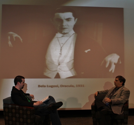 Afterwards the audience (mostly college kids) were given there chance to ask questions which ranged from his references to the Chicago suburb of Berwyn to what his favorite movies were outside of horror; BROTHER WHERE ART THOU, THE BLUES BROTHERS, and CASABLANCA to name a few.  He also was asked what he thought of the TV show “Buffy the Vampire Slayer” to which he stated that he was a fan (Yay!). His biggest confession, however, was enjoying the much maligned VAN HELSING. Aside from some CGI issues here and there, I gotta say that I didn’t mind that one either.