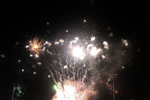 When the game ended (“Slammers” would end up ousting their foes 9-2), we were all treated to some 4th of July-style fireworks! In keeping with the night’s theme, this spectacle was put on with Halloween music playing in the background. Hearing the song “Monster Mash” amid the explosions would mark this the best firework’s display EVER so far as this horror fan is concerned.