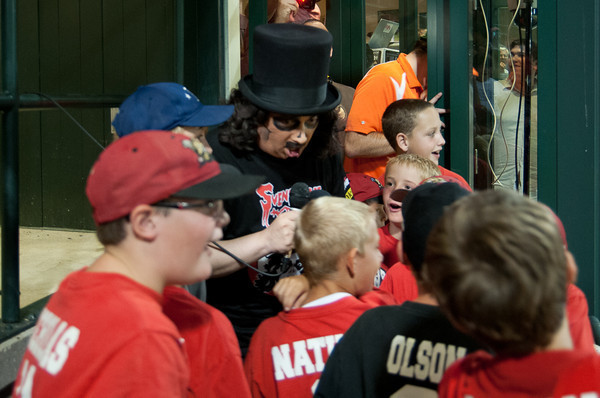 Later, Sven had to temporarily leave his line of fans and go out into the field where he supervised a contest highlighted by kids throwing rubber chickens through a hulla-hoop. As he made his way to the 1st base line, fans cheered as loudly as if “The Slammers” had knocked one out of the park.