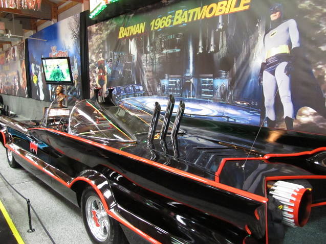 To the right of the line was the “Batcycle.” The “Batcycle” was used in both the 1966 film BATMAN as well as the television series and there are reported to have been four replicas built for tours. Oh, it was cool alright, even with the attached sidecar so Robin wouldn’t get left behind. Black, white, and red with batwing fins, who wouldn’t want to take it for a ride?