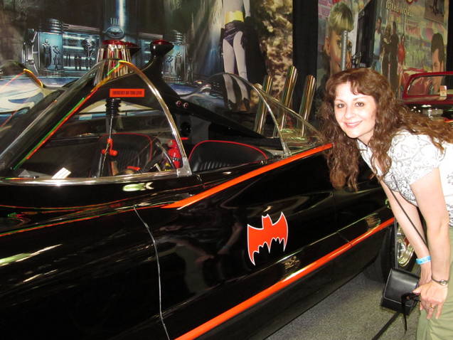 We arrived to a big set up outside the Auto Mall, A “live” band, beautiful women (dressed in their finest cherry-print dresses & high heels along with their hair in curls which struggled to survive the 100 degree heatwave) for the Pin-up Girl Contest, and a long line of people waiting to meet George Barris, famous for designing cars such as the “Munster Koach,” “Drag-u-la,” and the “Batmobile” from the 1960’s Adam West series.