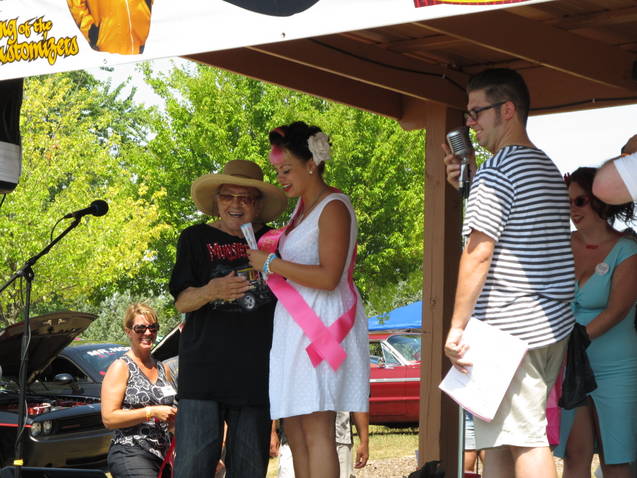 Oh no, an opportunity missed! George Barris was gone and the “Pin-up Girl Contest” was ready to begin. I spotted Horror Host, Count Gregula, in the crowd sans make-up. I had looked for him ever since our arrival because he was making an appearance but, by the time I managed to find him, he was out of costume. While he was taking pictures of the “Pin-up” girls, I ran over to introduce myself and shake his and Countess Gregula’s hands before scurrying out of his way. I didn’t want to interrupt his picture taking too much.