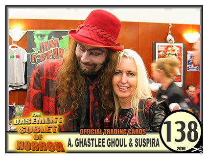 A GHASTLEE: Oh wow! So many. I’d have to say my Scary Camp convention in 2003. So many friends and fans all together under one roof. I just stood back at points and thought, ‘Look what I did!’ The local papers covered it thoroughly, and Dr. Creep and I were doing “Live” remotes on the local news. On Saturday night we had a party suite and Sid Haig hung out with us until 4:30am (Hey, we had to be up at 7am, but would you tell Sid it was past his bedtime?). On Sunday Morning we held a ‘revival’ on the stage in the convention center mezzanine, handing out pudding pies and shots of bourbon in exchange for people’s ‘confessions’ of their worst hangover stories. A Southern Baptist church was holding services on the same floor and the staff made us quit! Ha-HAAA! It was almost as funny as the Catholic High School graduation parading through our area on the way back to the parking garage! Oh, the HORROR! Too many great memories to recount them all, but definitely a real high point in the life of this horror host!