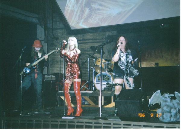 After that I was in a band called “Global Tango” with my current drummer/sidekick Louu the XXXmas Devil. When that project went south, Louu and I teamed up with a bassist named Jas for a sort of metal-jazz instrumental trio called “Ratt Sass.” We played a show at the Neon Movies here in Dayton where we performed a “Live” soundtrack to the silent film HAXAN a.k.a. WITCHCRAFT THROUGH THE AGES. I wore the make-up and hosted the evening, and Jas and I would switch instruments in the middle of songs. It was a real blast, and we even got a standing ovation at the end. About 8 years ago we started our current band, “Splattertude,” with Suspiria and Mayhen Zann. That grew out of acoustic jams we would do at my A. Ghastlee Nite at the Movies show at Cinema Wasteland. When the band went electric I decided to play bass with a bunch of effects on it instead of guitar and that began to define our style and sound. Since we were/are the de facto house band at Wasteland we were already wearing make-up and costumes, so we kept doing it at other gigs and the horror crept into the music as well. The band is definitely an extension of The Ghastlee Movie Show since we are all on the TV show as well, though when people call us a horror band I say I prefer to call it “Prog-Punk” – two things that shouldn’t go together!