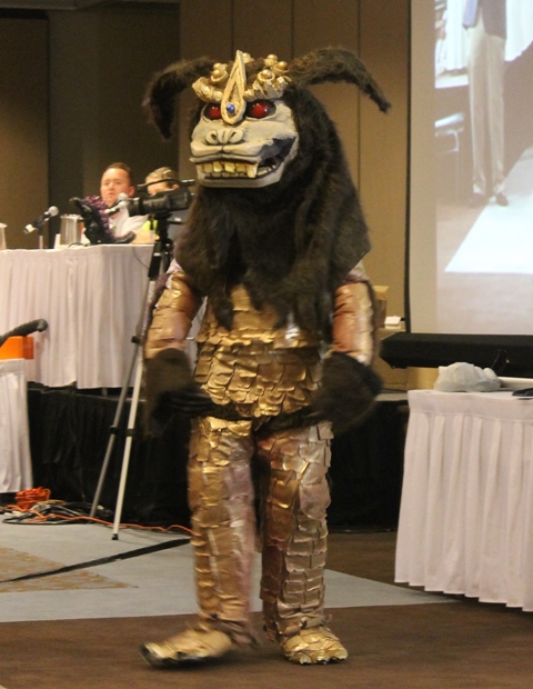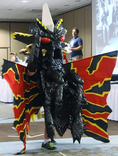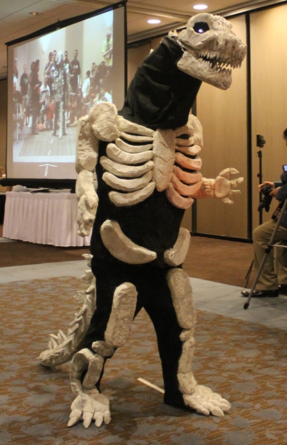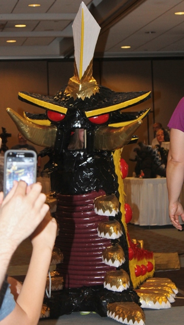 Of course most of the contestants don’t end up having as disastrous results as I did when I first tried my hand at costume making back in G-FEST XI. I had spray-painted foam swimming logs to make Mecha-King Ghidorah’s necks which began flaking off all over The Crowne Plaza floor prior to the parade. My poor son, Alex, overheated from the contest, waited patiently for his name to be called before promptly throwing up all over himself just in time for us to march past the judges. I didn’t give up, however, and we made more piratical costumes for future G-FESTS. The first year we attended, a talented costume maker named Paul Gavins created a breath-taking Mecha-Godzilla III costume that would warrant display for years to come.