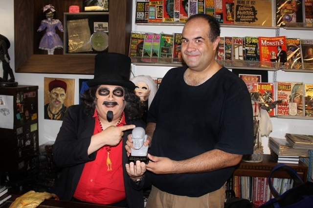 This would not be the usual Svengoolie/Horrorbles appearance. Horrorbles was unveiling its new comic, “Haunting Tales of Horrorbles” which features a special introduction by Svengoolie, himself! The spectacular 48 page extravaganza sells at the low price of $5.99 and contains five different stories. Created by Rafael Nieves and Dan Dougherty, it perfectly captures the essence of those fantastic EC Comic stories (e.g. “Tales from the Crypt”) that many of us have fond memories of. As the title implies, all five of these fictional stories revolve around the very real store, “Horrorbles,” and is narrated by the store’s owner, John Aranza.