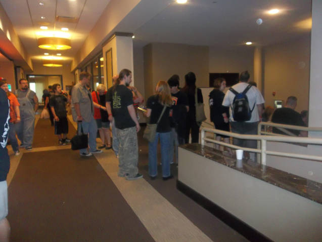 At any rate, I still ended up getting in line to see Svengoolie about an hour and a half early.  Shortly after, two women and a young girl stopped by to take a breather and, upon learning that they were right next to the room in which Svengoolie would be appearing, decided to stay.  The line soon began to grow behind us, to the point where I’m sure the people who arrived “on time” to meet Sven made a mental note to heed Mr. Goolie’s warning and get there early at his next appearance!