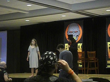 After the signing, it was time for the costume contest, with Svengoolie serving as the emcee!  As in past costume contests, the winner would ultimately be determined by the audience’s cheers.