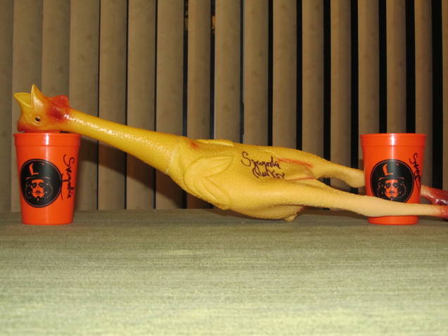 Regardless of how the picture looks, I do know that Bill and I are now the proud owners of a couple of signed orange cups which look pretty good sitting next to a certain autographed chicken.