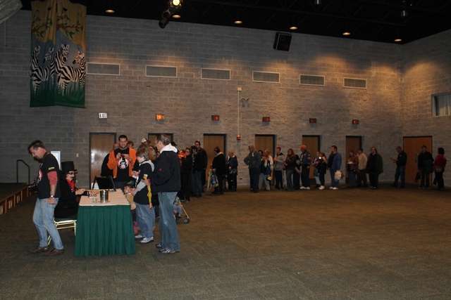 Horror Host, Svengoolie, was slated to arrive at 7pm but, by 6:30, there was already a long line winding around the zoo’s Discovery Center to see him. Svengoolie never disappoints when it comes to drawing large crowds at Brookfield Zoo! I remember at last year’s event (covered HERE) the line wrapped around the bison yard and eventually had to get cut off. In an effort to accomodate all of the eager fans, no pictures were permitted, just autographs. It didn’t seem to damper anyones mood and many found clever ways to snap pictures with him anyway while Sven added his own humorous touches.