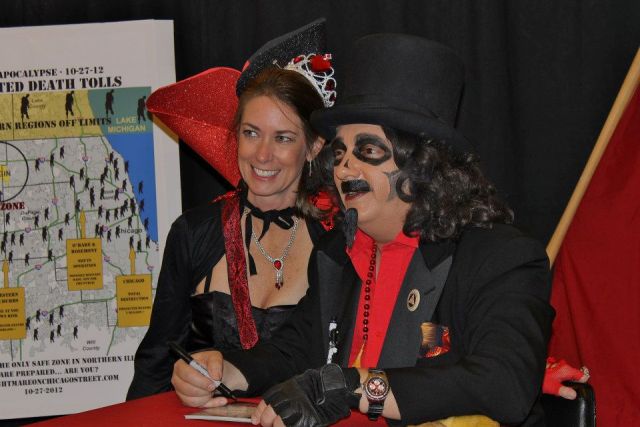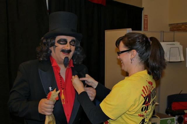 Shortly being taken behind the curtain, I was introduced to the woman behind much of the night’s festivities, Elizabeth Haney. Haney is highly respected in the Chicago’s horror community (and beyond) and one of reasons that Elgin, Illinois is fast becoming the Midwest Horror Capital, even rivaling that of Svengoolie’s adopted town, Berwyn. Indeed Haney is no stranger to that town as I remember seeing her years ago working at one of Sven’s signature haunts, “Horrorbles“.
