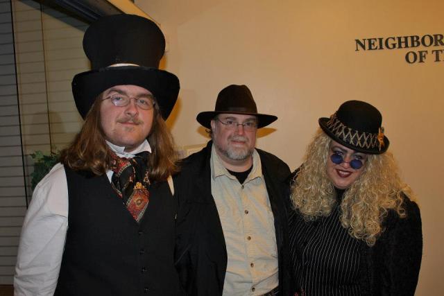 Elizabeth offered me a soda while one of her fellow members of ZDI (Zombie Defense Initiative), Alice Moring, helped prepare the man of the hour. Alice also gave Jim (who was celebrating his birthday that very same day) with a tasty gift; special cookies depicting Frankenstein & and his Bride.