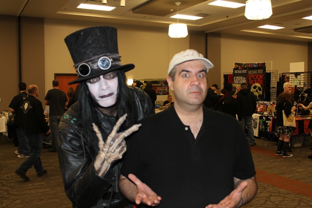 Not far away was Count Gore De Vol and it’s always nice getting a chance to see him as well. I wasn’t sure how he’d greet me as my patron horror host, Svengoolie, had just made his way to the airwaves of Gore’s Washington DC but he was very pleasant. Of course the next morning he did hurl a rubber chicken at me when I got up onstage to induct Sven into The Horror Host Hall of Fame but that’s for a later story.