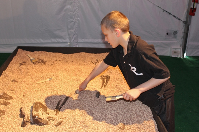 “Feathers to Fossils” features even more life-sized and mobile dinosaurs, only these are conceptualized versions with downy feathers highlighting their avian connection. My kids and I were VERY impressed with this portion of the exhibit and thought it alone was worth the price of admission!