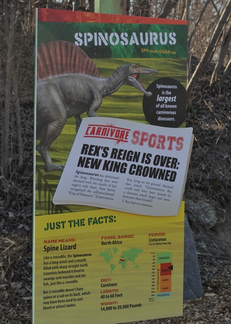 As for Jurassic Park 3D, I’d say it would be pretty redundant for me to attempt a review when any dinosaur fan with a pulse has, no doubt, seen (and already owns) this movie. While I didn’t care much for its sequels, there are also plans for a Jurassic Park 4 slated for release next year. I should note that while I didn’t like Parts 2 & 3, my kids seem to be big fans of the third installment. This was due to the addition of a giant meat-eater called Spinosaurus. Apparently showing that behemoth make short work of a T-Rex in the film has forever made it the new favorite for younger generations of dino fans. Brookfield Zoo must have taken note as it is now part of this year’s exhibit, prompting my youngest to exclaim, “FINALLY, they got a Spinosaurus!”