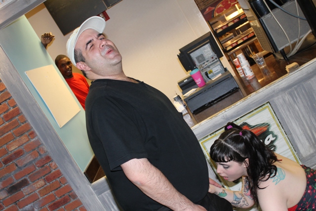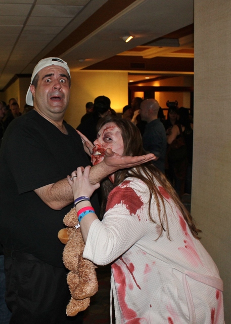 The whole thing was surreal and, amid the hazy cloud of alcohol, I’m pretty sure her boyfriend was watching the whole thing! Meanwhile the guy running the concession (seen in the above photo’s background) grabbed his buddies from the kitchen and wanted me to show them the pictures as they didn’t believe him when he told them what was going on (and neither did I for that matter). I was suddenly reminded of that famous Mae West line, “When women go wrong, men soon follow”…and there were LOTS to follow at Horrorhound!