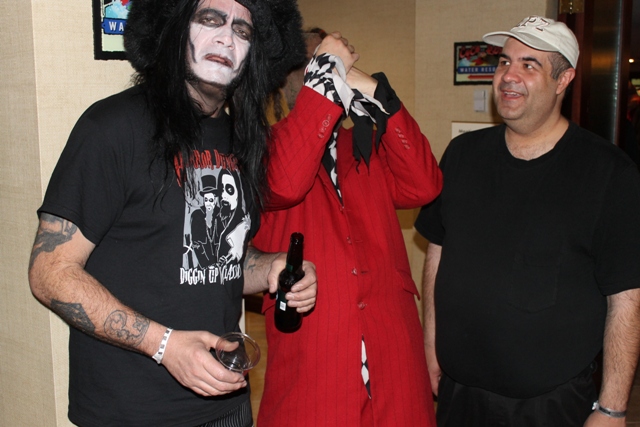 Another great encounter was via Daniel Roebuck whom I’d been searching for since the event began. I was finally able to relay messages to him from my friend, Elizabeth Haney, as well as Count Gore De Vol. Roebuck was wearing pajama pants and seemed like he needed to relax. Good thing he was headed to the hotel restaurant bar for a refreshment…and good thing he was wearing PJ’s so he could take a nap during the time it takes those nitwits to fix a drink!