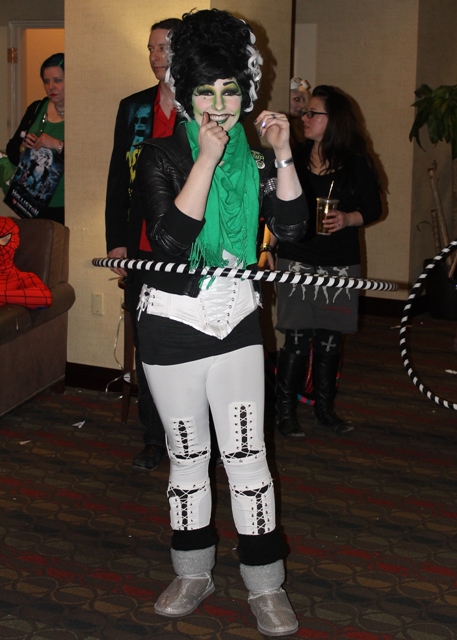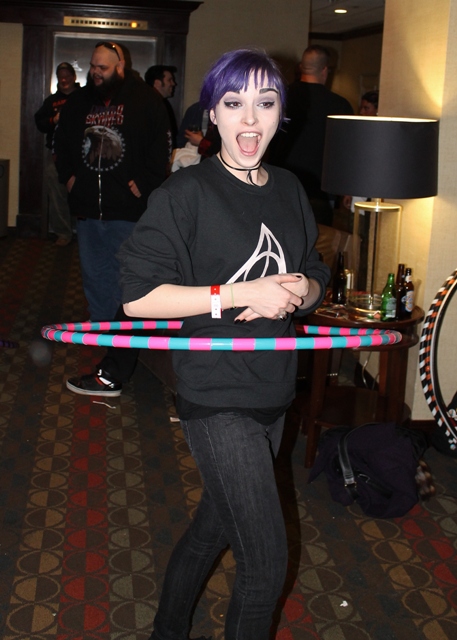 We returned to the hotel where there was a big hula-hoop contest going on and we drunkenly wooted and cheered for Midnite Mausoleum’s Robyn Graves and Sasha Mullins! “Boy, that Robyn is a great gal!” I said. “Yeah,” said Russ. “She’s so sweet I feel like a protective uncle.”