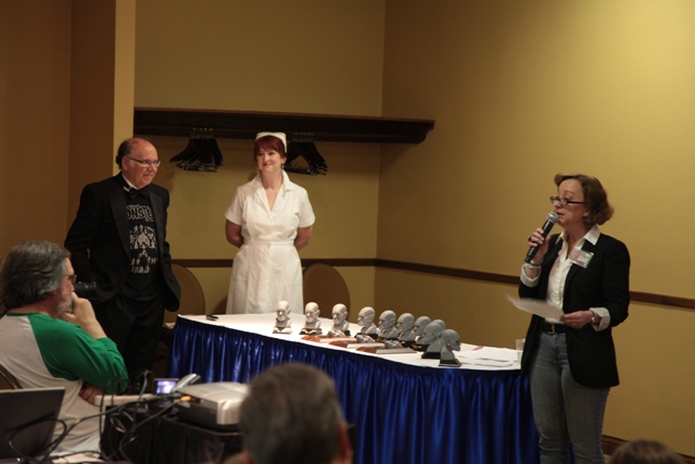 This year saw national horror host, Svengoolie, win as Best Horror Host and, while unable to accept his award personally, was represented by one of my fellow super fans, Chicago’s Matron of Monsters – Elizabeth Haney. Ms. Haney works for Acme Design (the same company crafting Sven’s new coffin) and is an all around great lady!