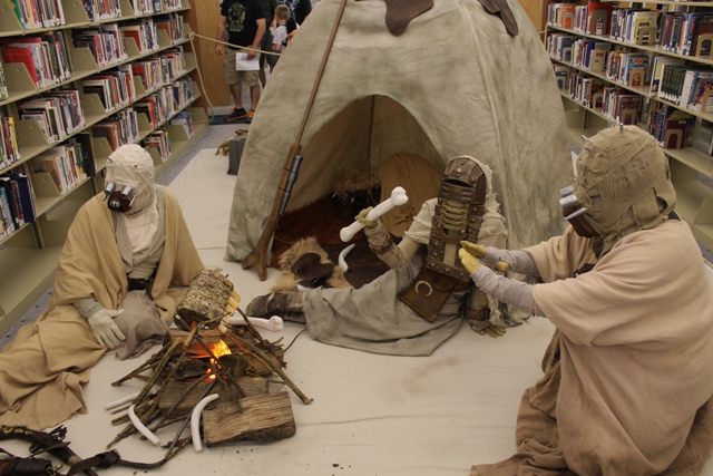 Throughout the library were also various scenes, including a family of sand people kicking back at a campfire.