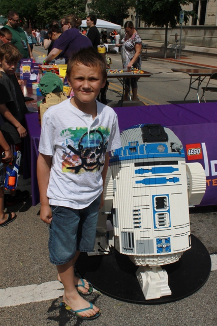 Outside the library were a few vendors, many offering toys and items I currently have in storage. Our first stop was a LEGO stand which instantly garnered Luke’s attention. Standing next to the table was a life-size LEGO R2D2!