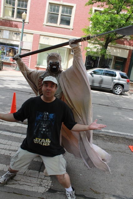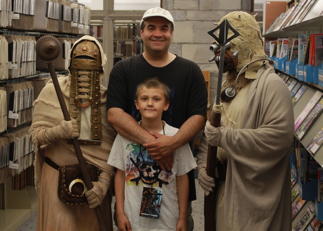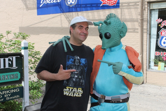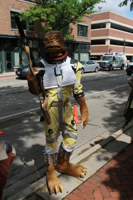 Amid the crowds of visitors, were plenty of costumed characters to keep the cameras clicking! The first I encountered was a great looking Greedo! Greedo, the Rodian bounty hunter seen in the first STAR WARS film (A New Hope) has since become the center of a fan generated controversy. Without getting into details, let’s just say that in MY world Han Solo always shoots FIRST!